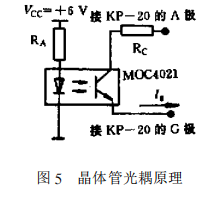 只需取下图1所示的D1和D2两个二极管,然后接到MOC4021光电隔离器的二极管侧,另外2个端点按图5所示接到晶闸管的控制极G和阳极A上。Rc及Rx的参数设计如下: