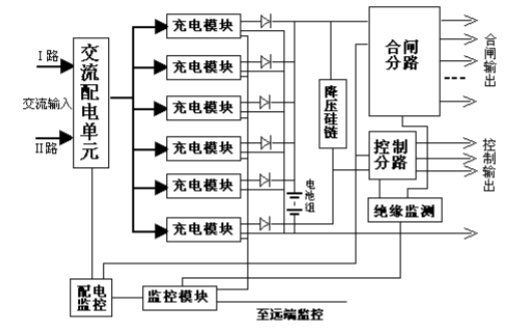 1.当交流电源失电时,蓄电池组即刻通过硅链不间断向母线供电,当母线电压降低时,系统可通过调压装置自动地对母线电压进行调节,当母线电压恢复正常时,系统将自动关断母线电压调节装置。