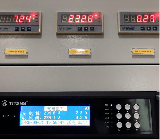 2. 康复充电机后,通过调查两套充电机输出电流表并用钳形电流表测量,确认两套充电机均有输出。
